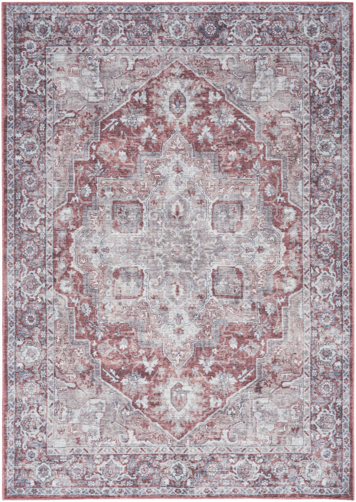 Add great coloration and comfortable texture to your space with this 8' x 10' blue and pink floral power loom distressed washable area rug. This rectangle shaped rug features a floral design in blue and pink to give it visual interest. A classic shape marries with good looking design for your space This superior Turkish rug represents the highest quality and is built to last. Place this area rug against a hardwood or tile floor and it will enliven your living space with style and sophistication. .28" H x 94.00" W x 118.00" D