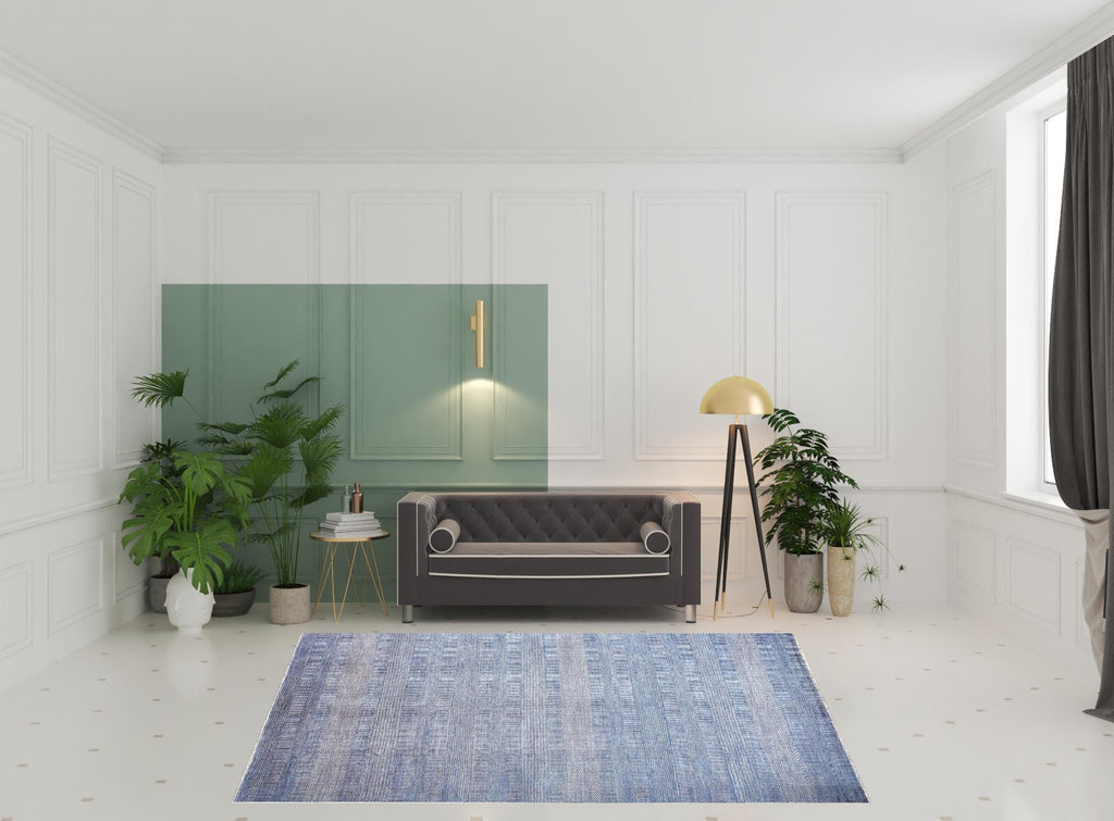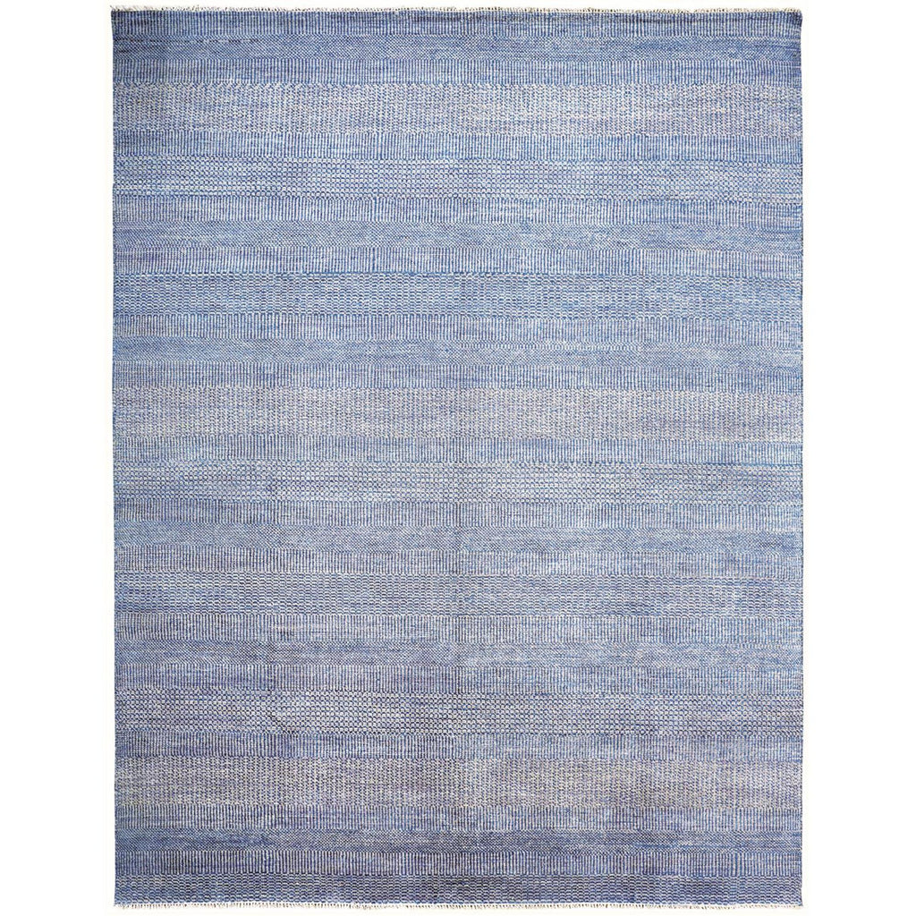 Add some artistry to your room with this 8' x 10' blue and silver wool striped hand knotted area rug. This rectangle shaped rug features a striped design in blue and silver to give it visual interest. A classic shape marries with good looking design for your space Crafted by skilled artisans, this hand knotted rug is genuine and unique. No two will be exactly alike. Place this area rug against a hardwood or tile floor and it will enliven your living space with style and sophistication. 1" H x 93" W x 117" D