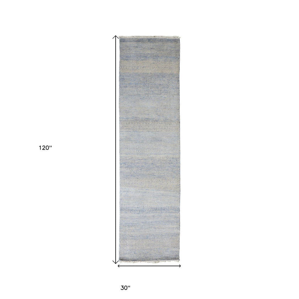8' x 10' Blue and Silver Wool Striped Hand KNotted Area Rug