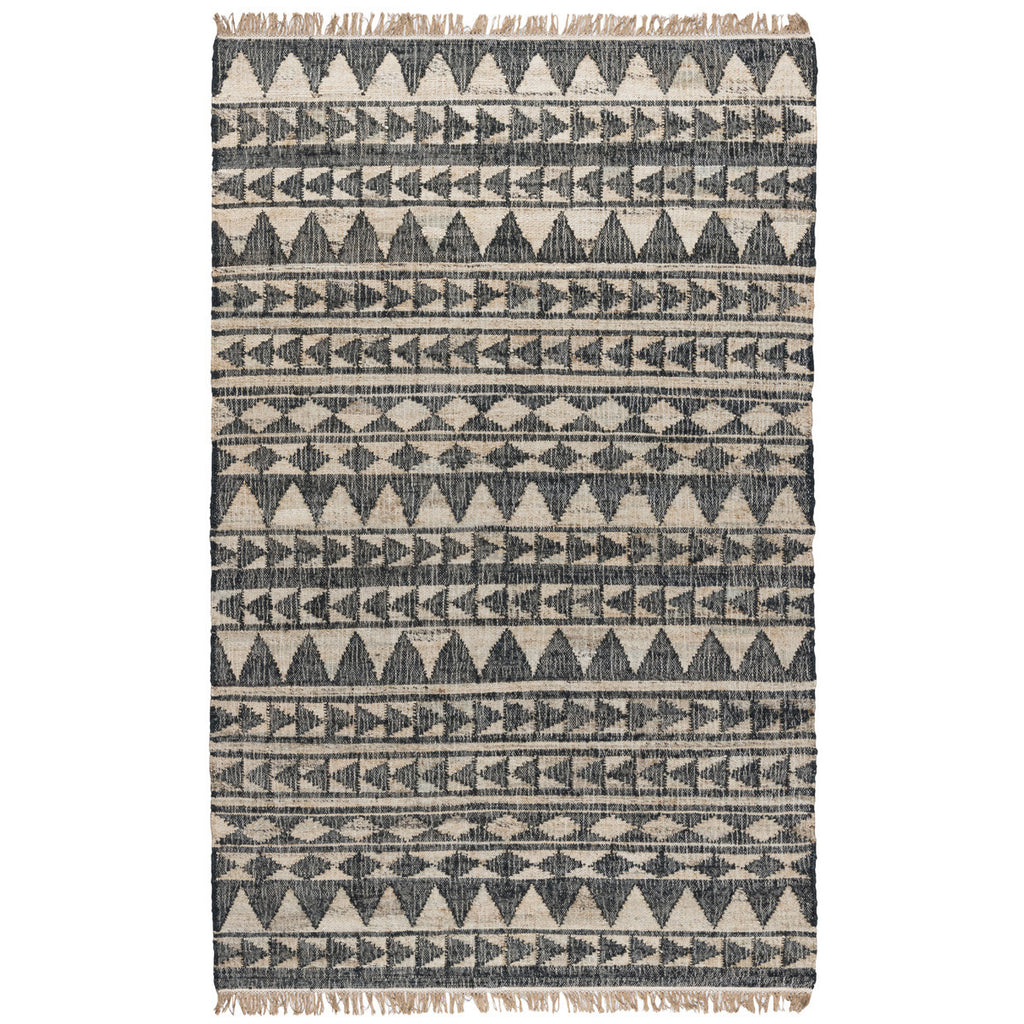 Add some artistry to your room with this 8' x 10' charcoal geometric hand woven area rug. This rectangle shaped rug features a geometric design in charcoal to give it visual interest. A classic shape marries with good looking design for your space Ideal for spaces with kids and pets, this rug is stain resistant to help repel stains and spilled liquids. Crafted by skilled artisans, this hand woven rug is genuine and unique. No two will be exactly alike. Area Rugs help to give warmth and sense of home to your space. 0.25" H x 96" W x 120" D