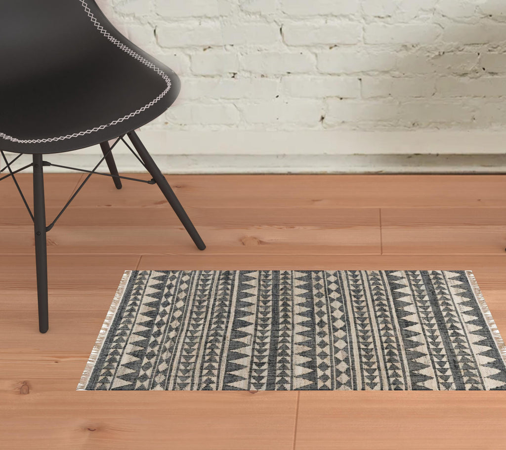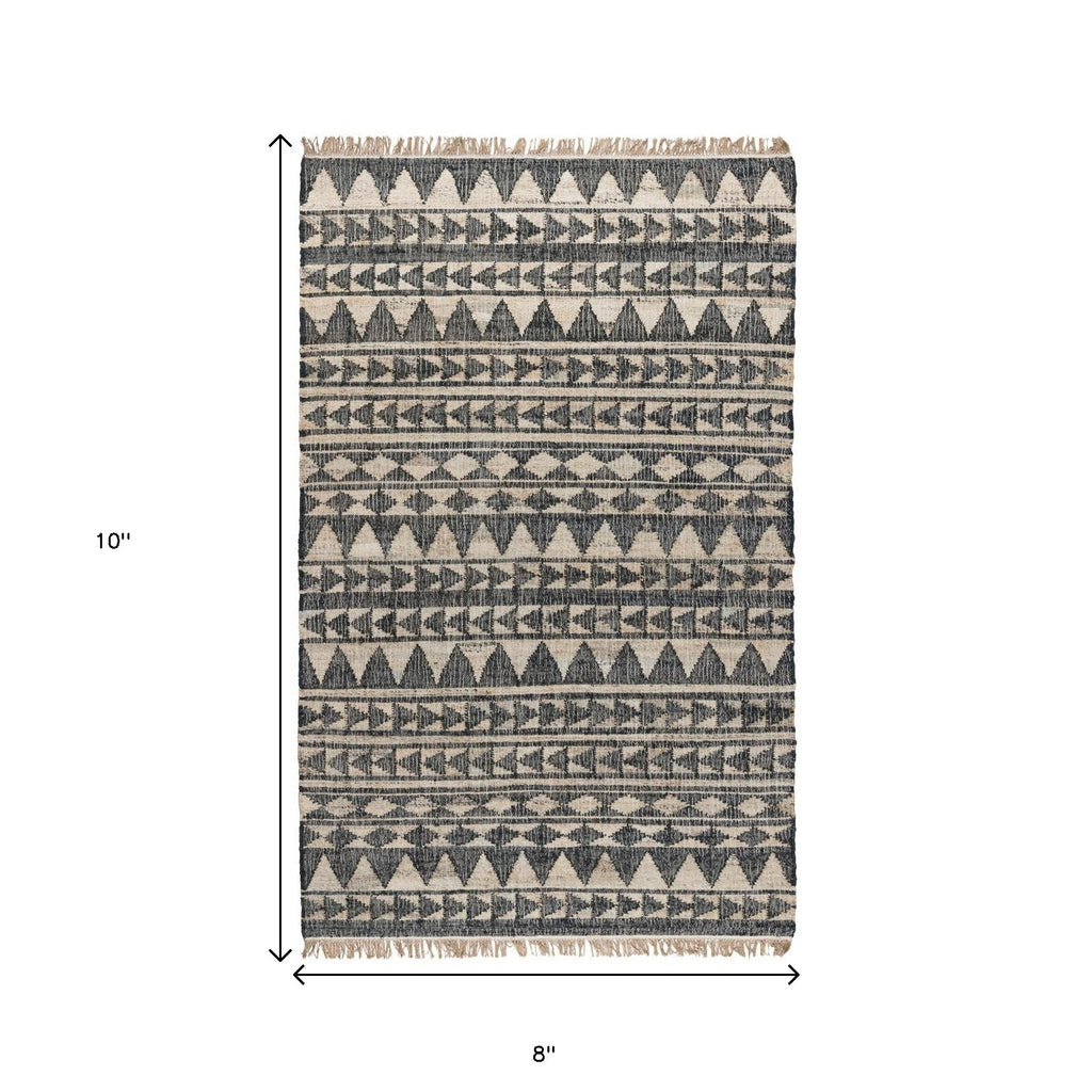 8' X 10' Charcoal Geometric Hand Woven Area Rug