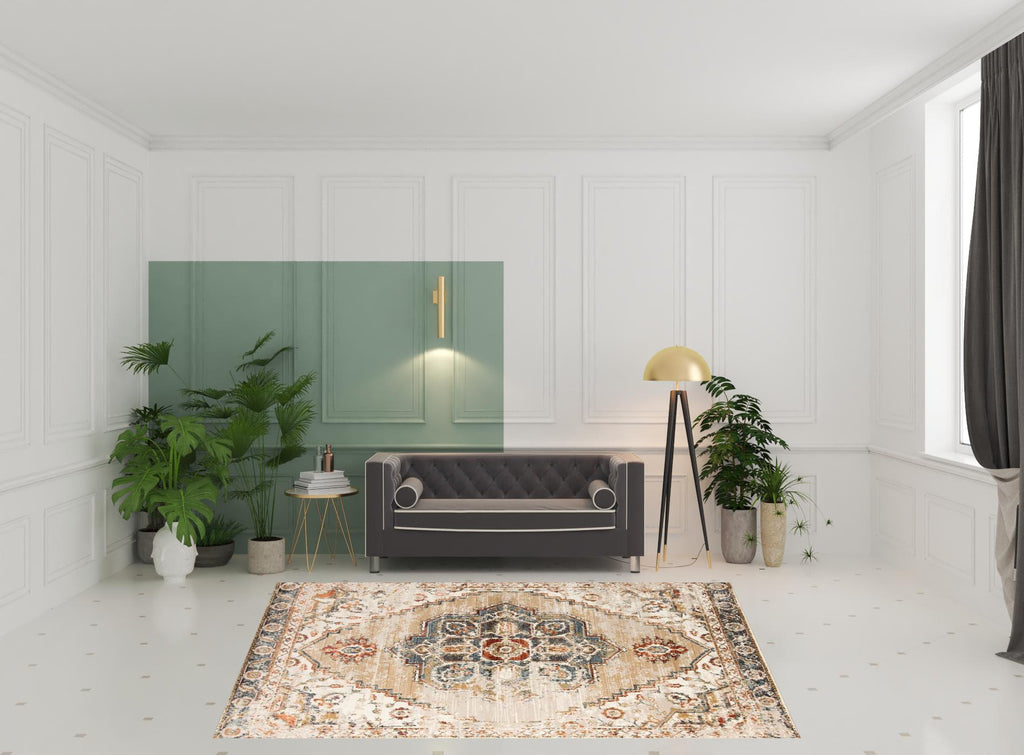 Add great coloration and comfortable texture to your space with this 8 feet x 10 feet gold medallion power loom area rug. This rectangle shaped rug features a medallion design in gold to give it visual interest. A classic shape marries with good looking design for your space Ideal for spaces with kids and pets, this rug is stain resistant to help repel stains and spilled liquids. Place this area rug against a hardwood or tile floor and it will enliven your living space with style and sophistication. 0.38 inches H x 93 inches W x 117 inches D