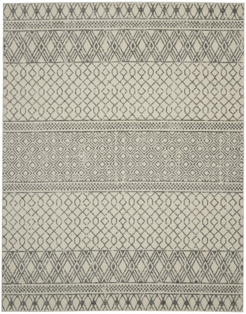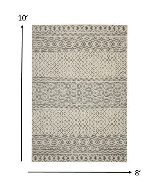 Add some artistry to your room with this 8' x 10' gray geometric power loom area rug. This rectangle shaped rug features a geometric design in gray to give it visual interest. A classic shape marries with good looking design for your space The coloring of this rug adds a delightfully neutral tone to your home and will easily match with most any decor. This superior Turkish rug represents the highest quality and is built to last. Place this area rug against a hardwood or tile floor and it will enliven your living space with style and sophistication. 1" H x 96" W x 120" D