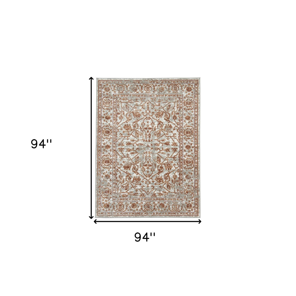 8' x 10' Orange Floral Power Loom Area Rug With Fringe