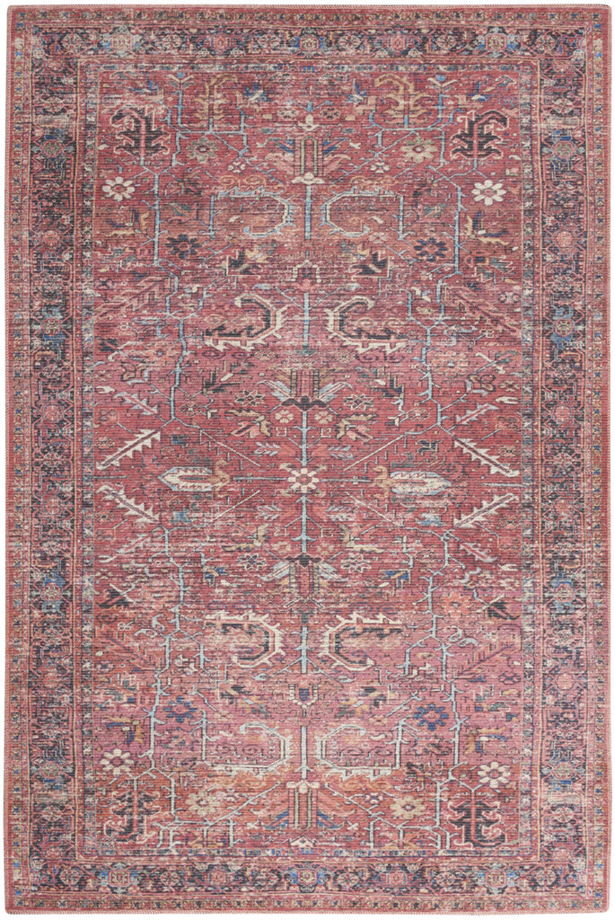 8' X 10' Red Floral Power Loom Distressed Area Rug