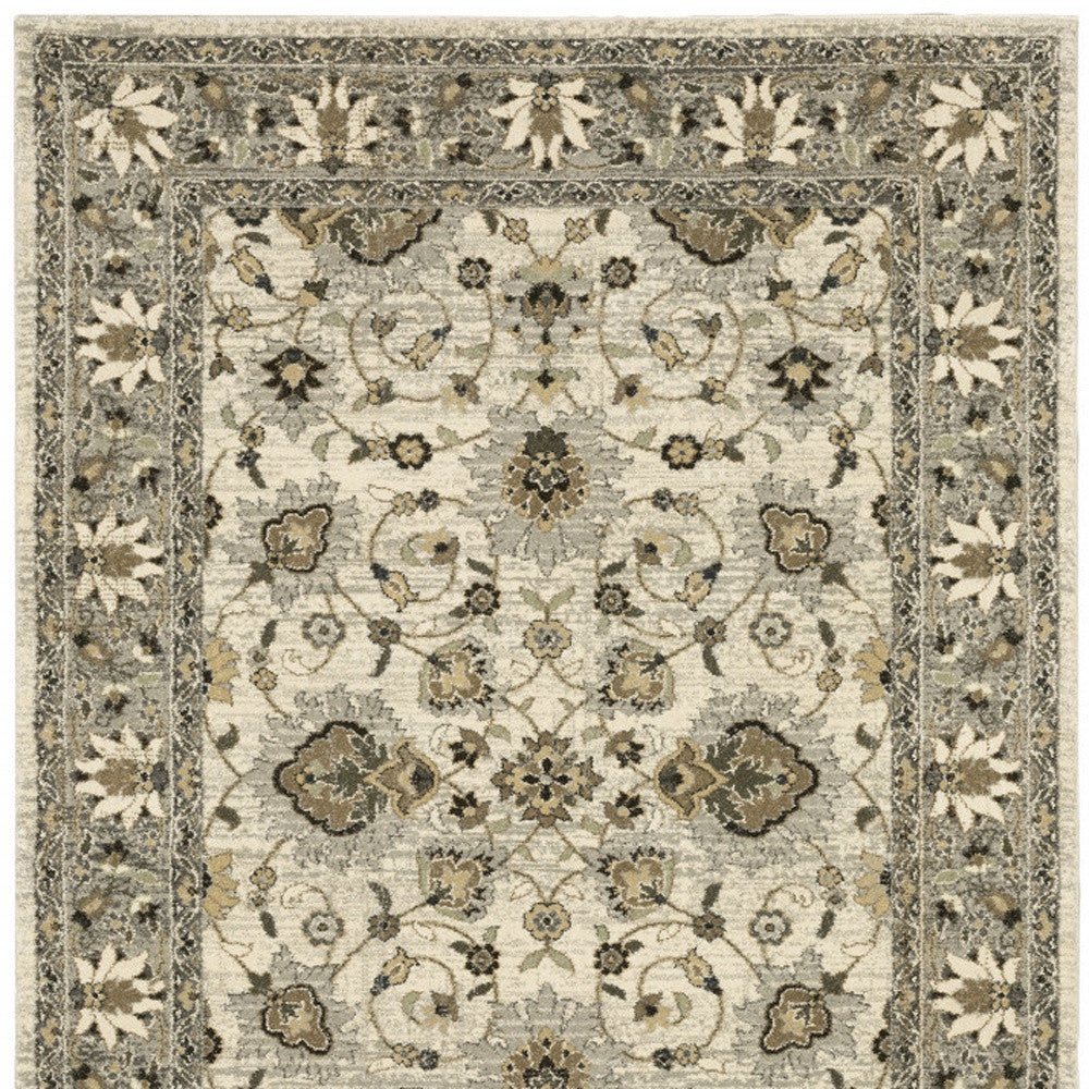 8' X 11' Beige Grey Brown And Charcoal Oriental Power Loom Stain Resistant Area Rug