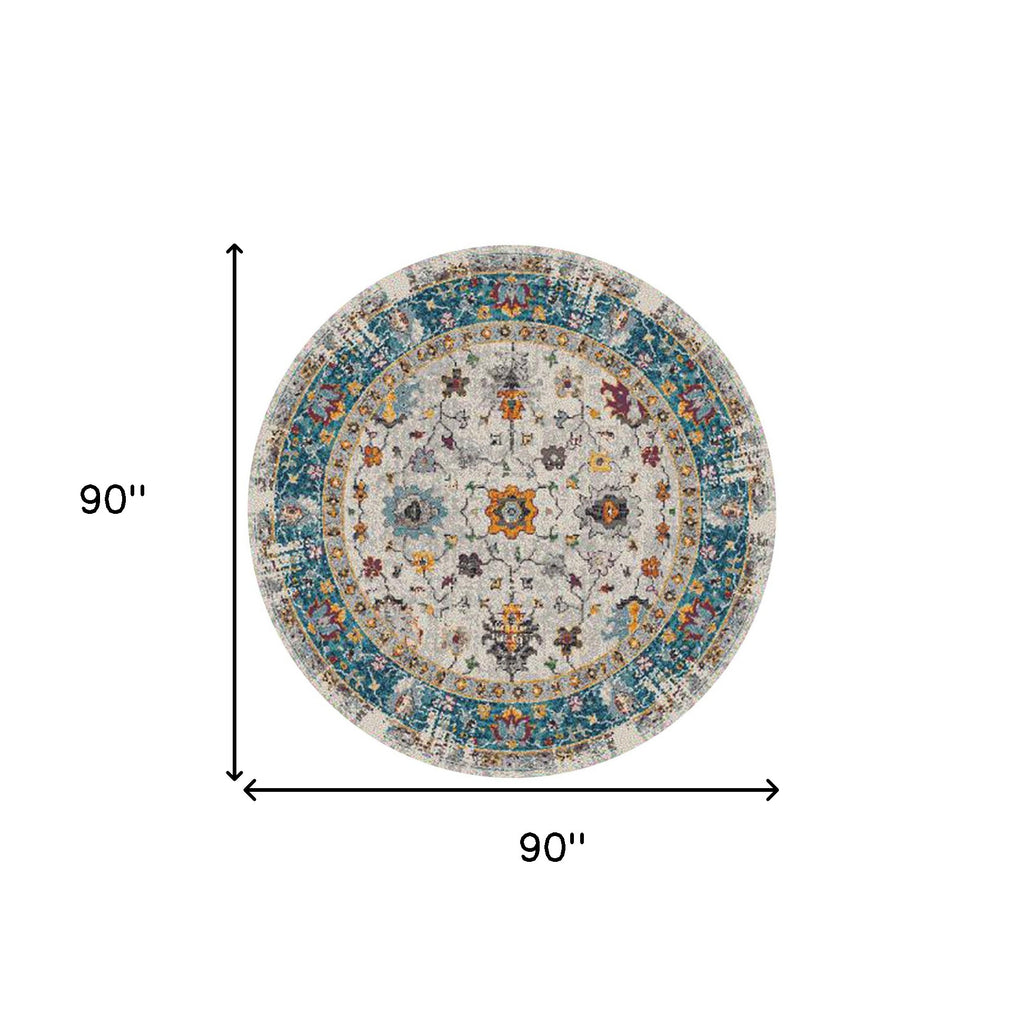 8' x 11' Blue and Orange Floral Power Loom Area Rug