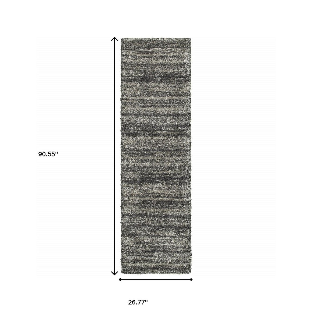 8' X 11' Charcoal And Grey Geometric Shag Power Loom Stain Resistant Area Rug