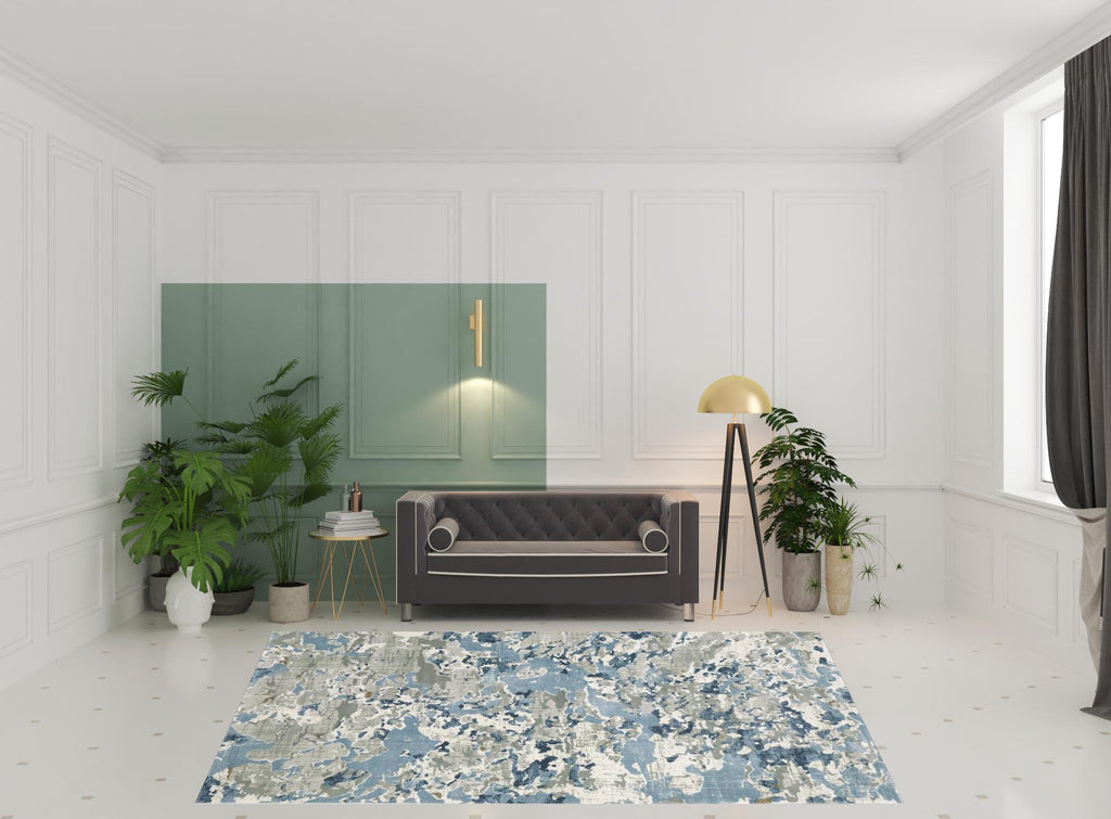 Add great coloration and comfortable texture to your space with this 8' x 11' grey blue ivory navy beige and brown abstract power loom stain resistant area rug. This rectangle shaped rug features a abstract design in grey blue ivory navy beige and brown to give it visual interest. A classic shape marries with good looking design for your space Ideal for spaces with kids and pets, this rug is stain resistant to help repel stains and spilled liquids. Area Rugs help to give warmth and sense of home to your space. 1" H x 94.49" W x 129.92" D