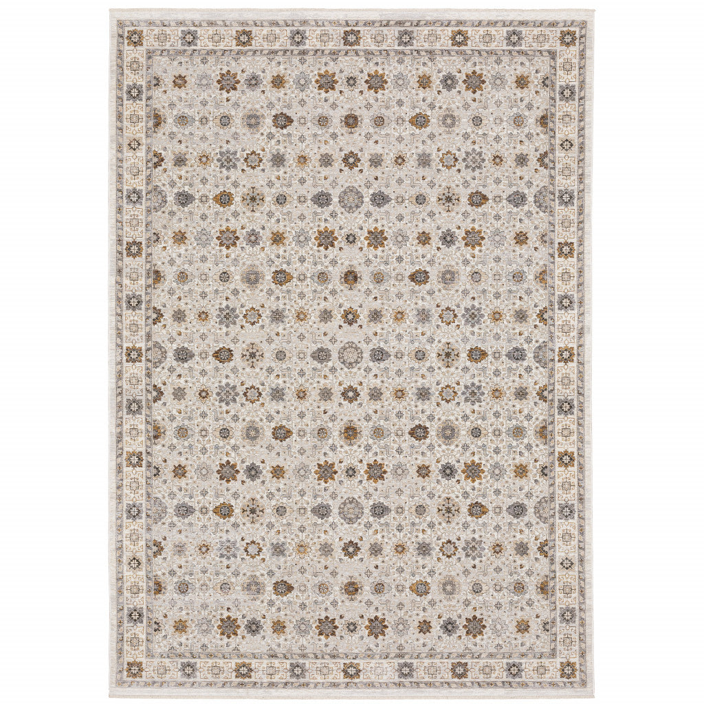 8' X 11' Ivory And Gold Oriental Power Loom Stain Resistant Area Rug With Fringe