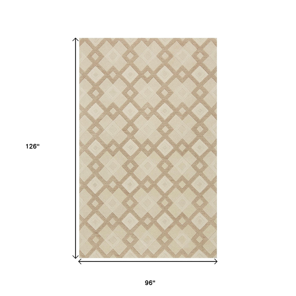 8' X 11' Ivory Wool Geometric Hand Tufted Area Rug