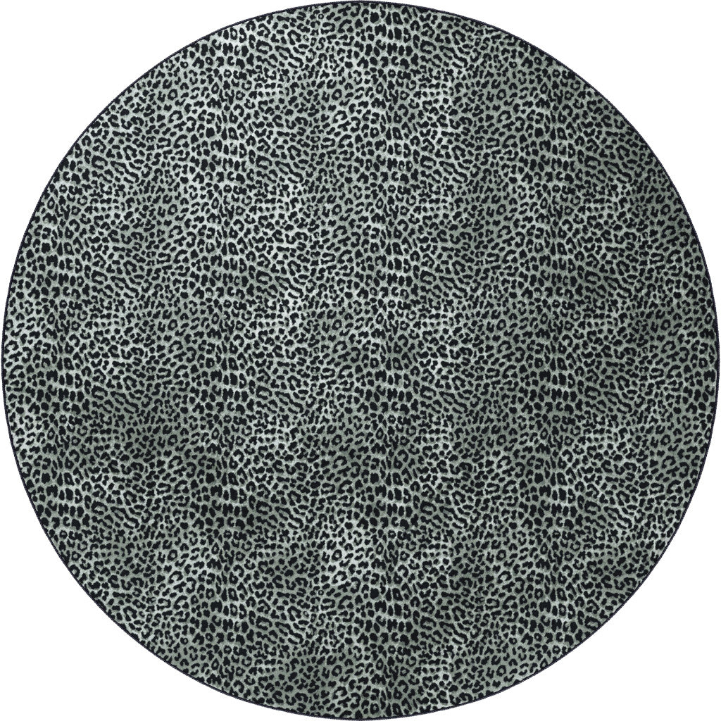 8' X 8' Black and Gray Leopard Round Shag Handmade Non Skid Area Rug