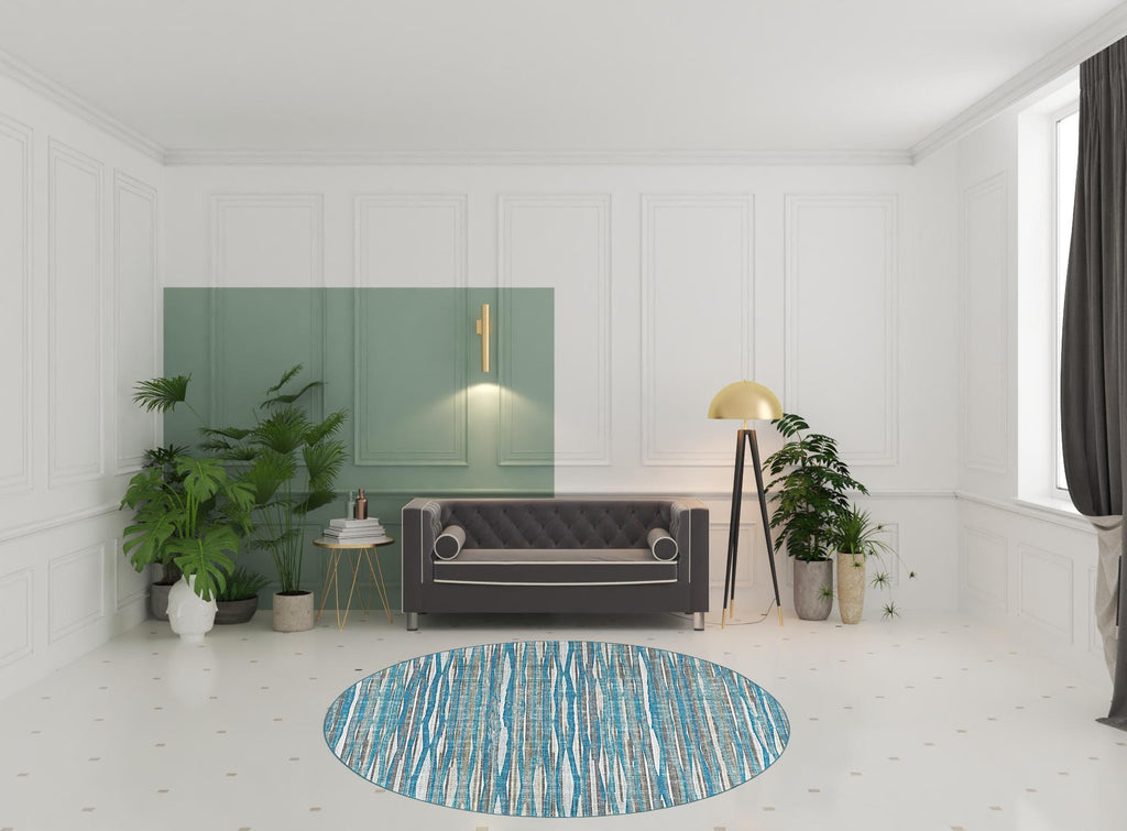 Add some artistry to your room with this 8' x 8' blue round ombre tufted handmade area rug. This geometric round shaped rug features a ombre pattern in blue that combines a good looking print with a unique and updated shape. The mix of shape, color, and design gives this rug refreshing visual interest. Area Rugs help to give warmth and sense of home to your space. 0.43" H x 96" W x 96" D
