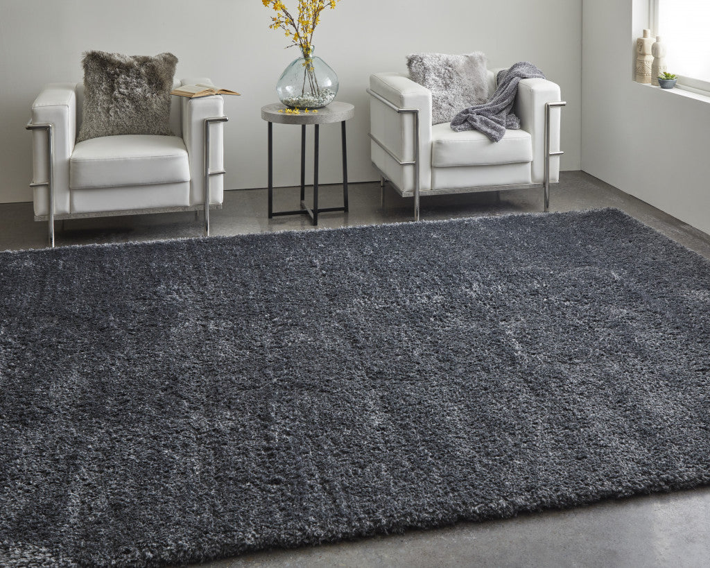 Set an inviting tone in your space with this 9' x 12' black shag power loom area rug. This rectangle shaped rug flaunts a black color that will be a great way to accent your space. Solid colors are versatile and will blend with any existing decor style. The coloration of this rug infuses an updated and modern vibe into your space. This superior Turkish rug represents the highest quality and is built to last. Ideal for spaces with kids and pets, this rug is stain resistant to help repel stains and spilled liquids. The retro shag construction of this luxurious rug will provide a soft and comfortable barrier to color tile and hardwood floors. Area Rugs help to give warmth and sense of home to your space. 2.09" H x 108" W x 144" D