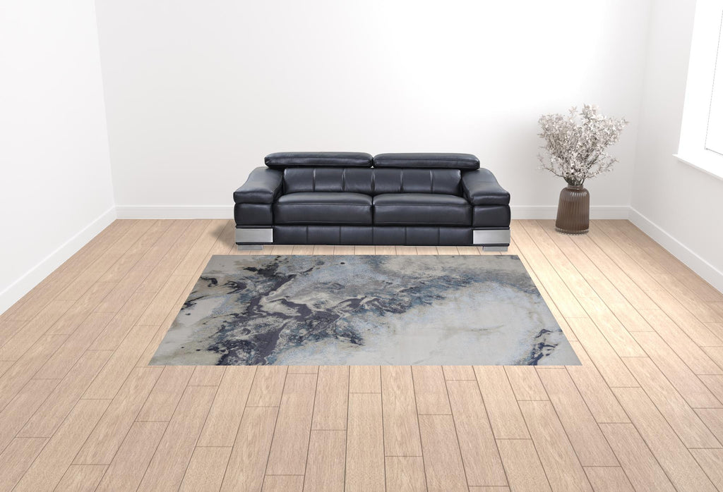 Set an inviting tone in your space with this 9' x 12' blue abstract area rug. This rectangle shaped rug features a abstract design in blue to give it visual interest. A classic shape marries with good looking design for your space This superior Turkish rug represents the highest quality and is built to last. Ideal for spaces with kids and pets, this rug is stain resistant to help repel stains and spilled liquids. Area Rugs help to give warmth and sense of home to your space. 0.39" H x 110" W x 144" D