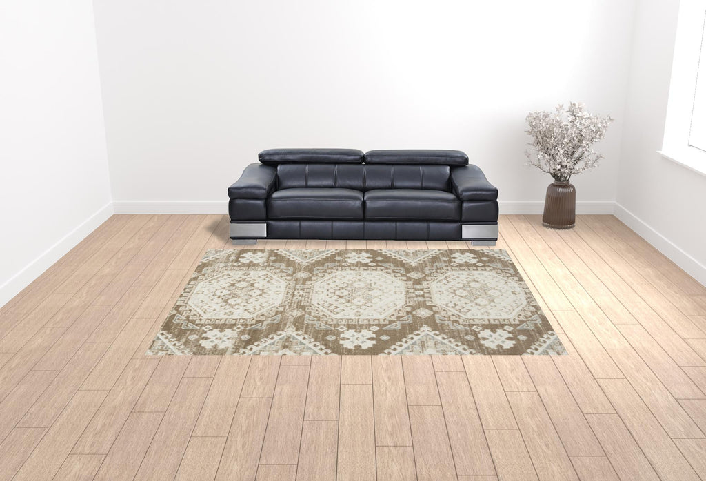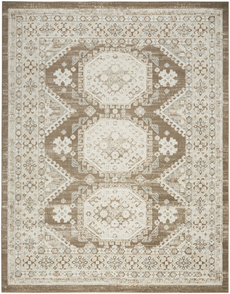 Add great coloration and comfortable texture to your space with this 9-foot x 12-foot brown geometric distressed area rug. This rectangle shaped rug features a geometric design in brown to give it visual interest. A classic shape marries with good looking design for your space place this area rug against a hardwood or tile floor and it will enliven your living space with style and sophistication. 108-inch H x 144-inch W x 0.35-inch D