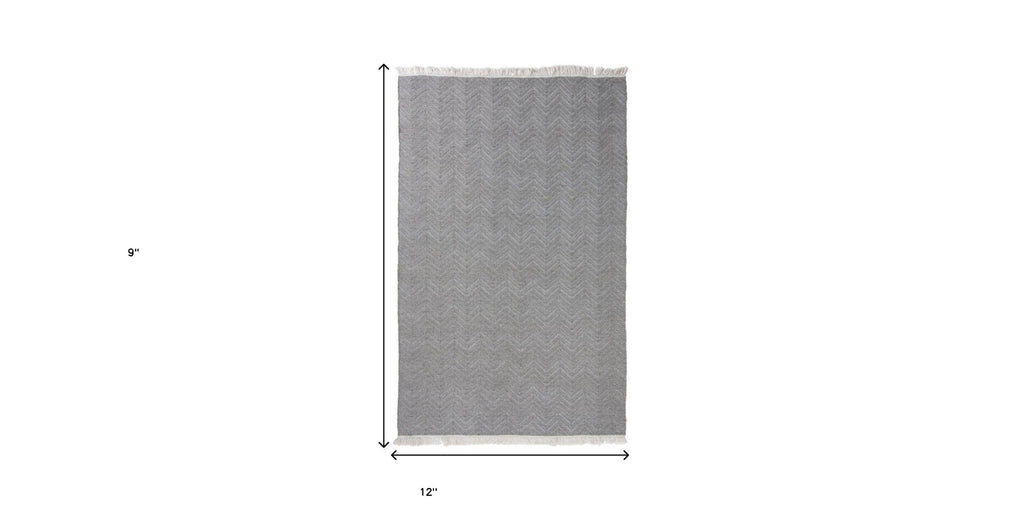 9' X 12' Gray Chevron Hand Woven Area Rug