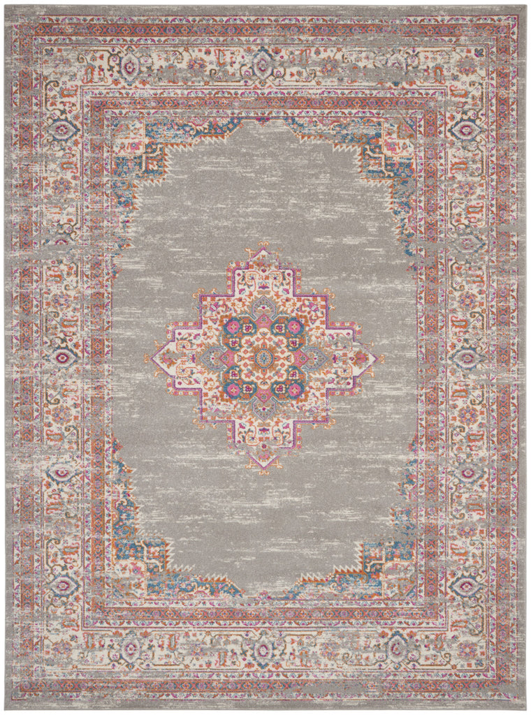 This 9' x 12' gray floral power loom area rug, is a great way to add warmth to a room. This rectangle shaped rug features a floral design in gray to give it visual interest. A classic shape marries with good looking design for your space The coloring of this rug adds a delightfully neutral tone to your home and will easily match with most any decor. Made in Turkey, this rug offers high quality combined with good looking designer sensibilities. Place this area rug against a hardwood or tile floor and it will enliven your living space with style and sophistication. .50" H x 108.00" W x 144.00" D