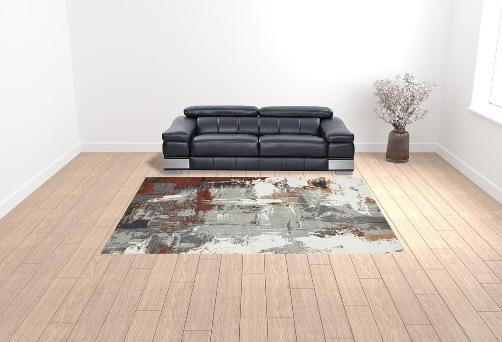 9' x 12' Rust Abstract Power Loom Area Rug