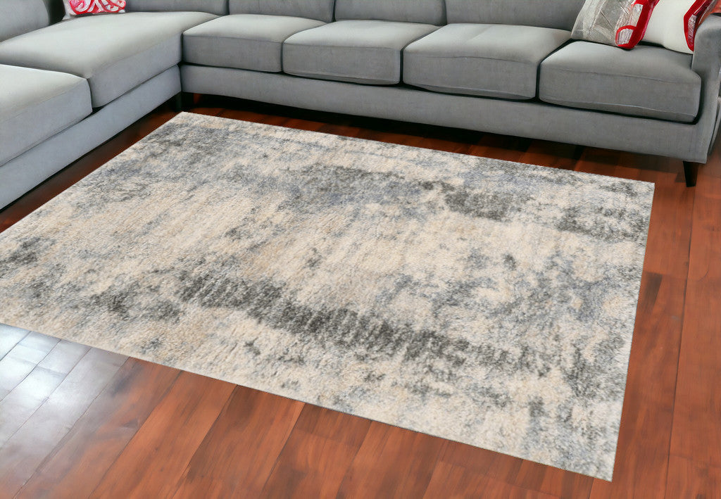 9'X13' Ivory Blue Machine Woven Abstract Indoor Area Rug