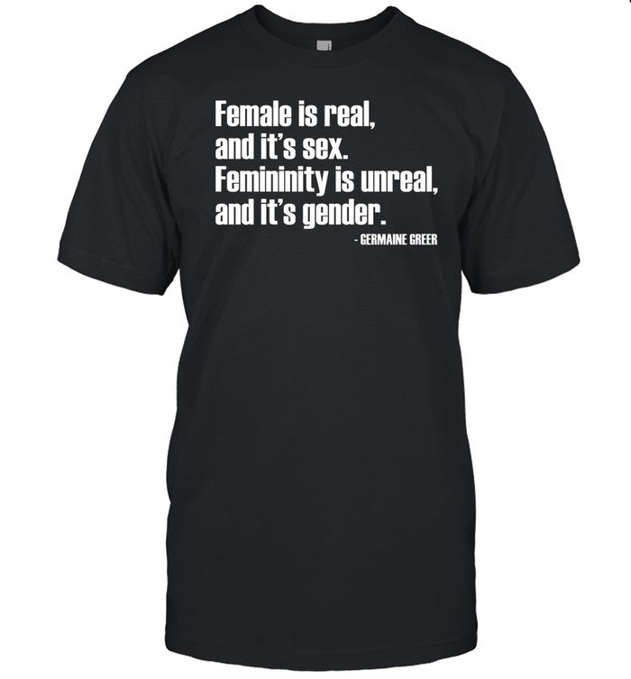 Angie Jones Wearing Female Is Real And It's Sex Femininity Is Unreal And It's Gender Shirt