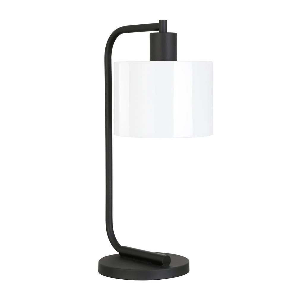 20" Black and White Metal Arched Table Lamp With White Drum Shade