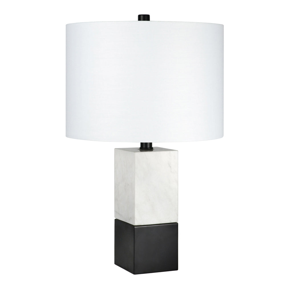 Bring of level of elegance and freshness to your space with this high quality 21-inch black and white marble table lamp with white drum shade. The base of this lamp is made of marble finished in a black and white tone. The white shade has a drum shape and is made from fabric. This standard table lamp is designed to provide general lighting to the area. The light that this lamp throws is soft and warm to elevate the look of most any space in your home. Bring some lite and good vibes into your space with this updated and stylishly designed lamp. 21-inch H x 13-inch W x 13-inch D