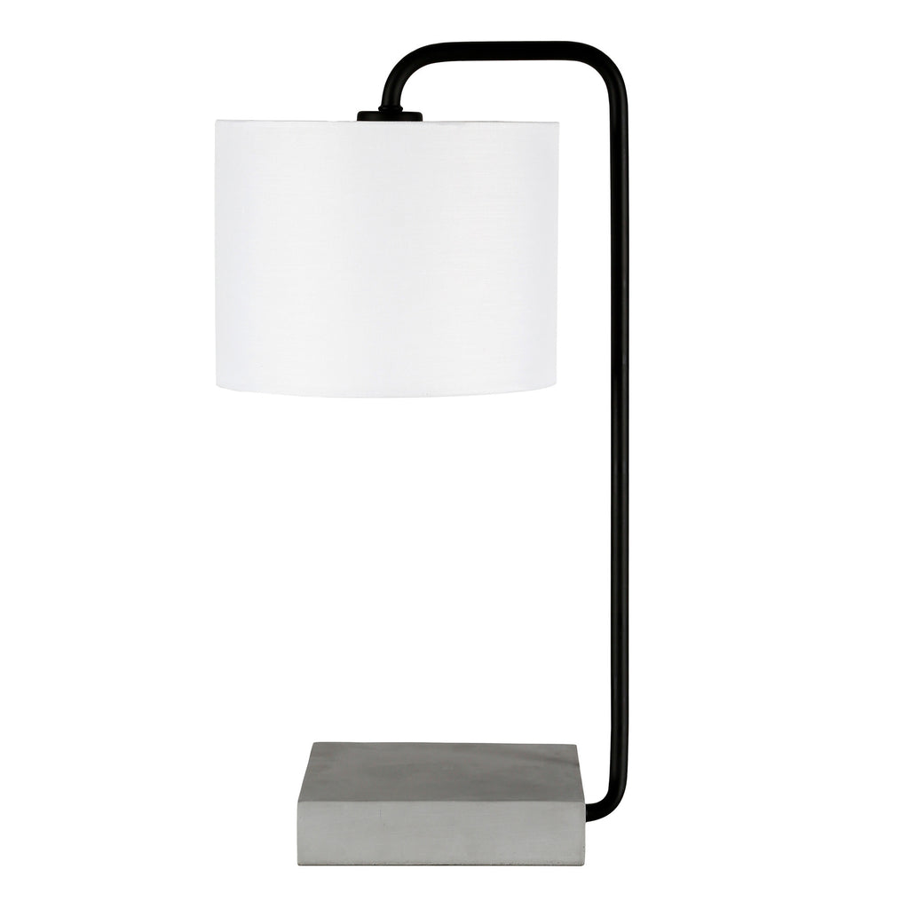 22" Black and Gray Concrete Arched Table Lamp With White Drum Shade