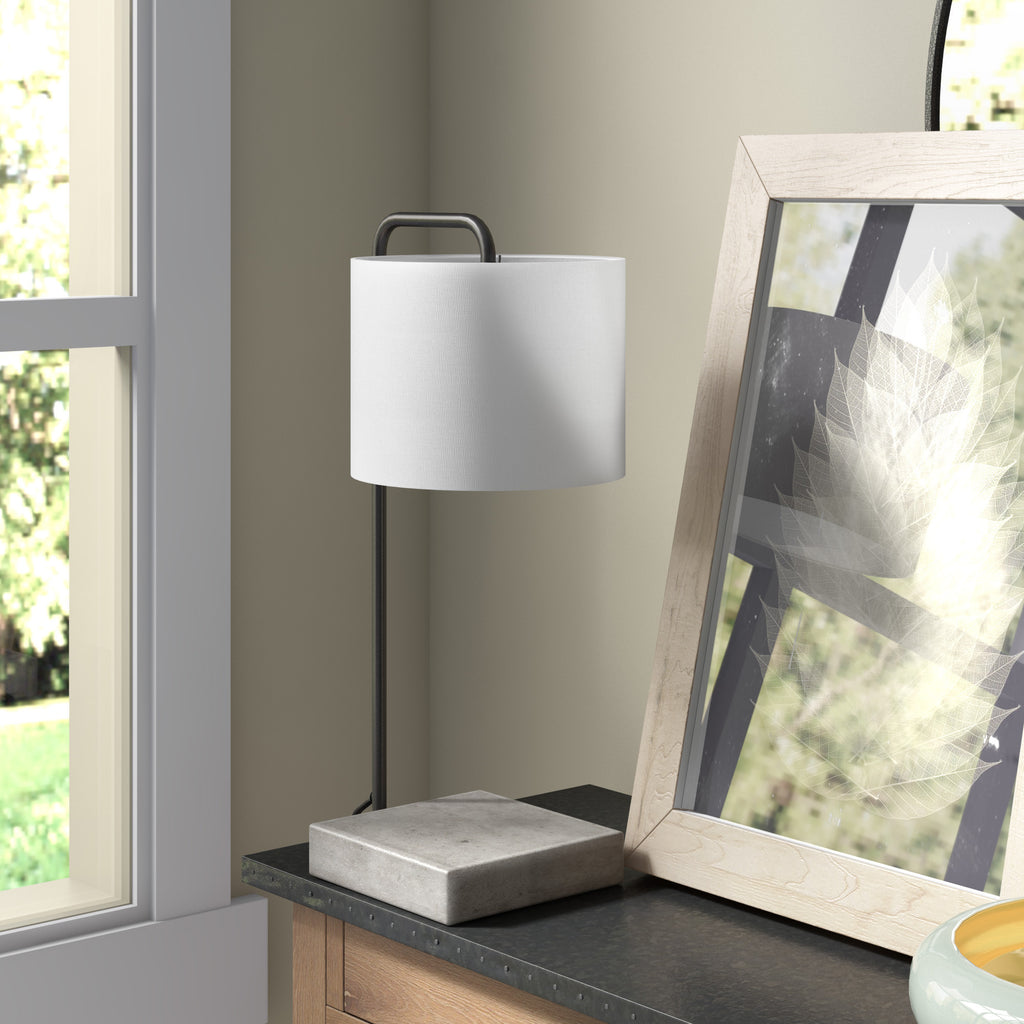This 22-inch black and gray concrete arched table lamp with white drum shade is the perfect combination of design and function. The base of this lamp is made of black and gray concrete. Includes a white fabric, drum shaped shade, making this a fashionable piece that will complement most any interior. A sophisticated take on a classic, this arched table lamp is a great option for a unique look. High quality design makes this a great lamp for not only lighting, but accenting a room with style. It is perfect for virtually any decor. 22-inch H x 10-inch W x 9-inch D