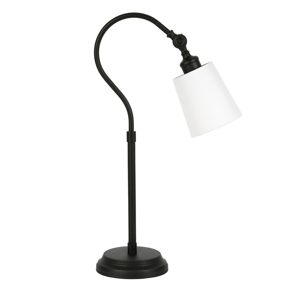 arched table lamp white drum, table lamp white drum shade, metal arched table lamp, black metal arched table lamp, metal arched table lamp white