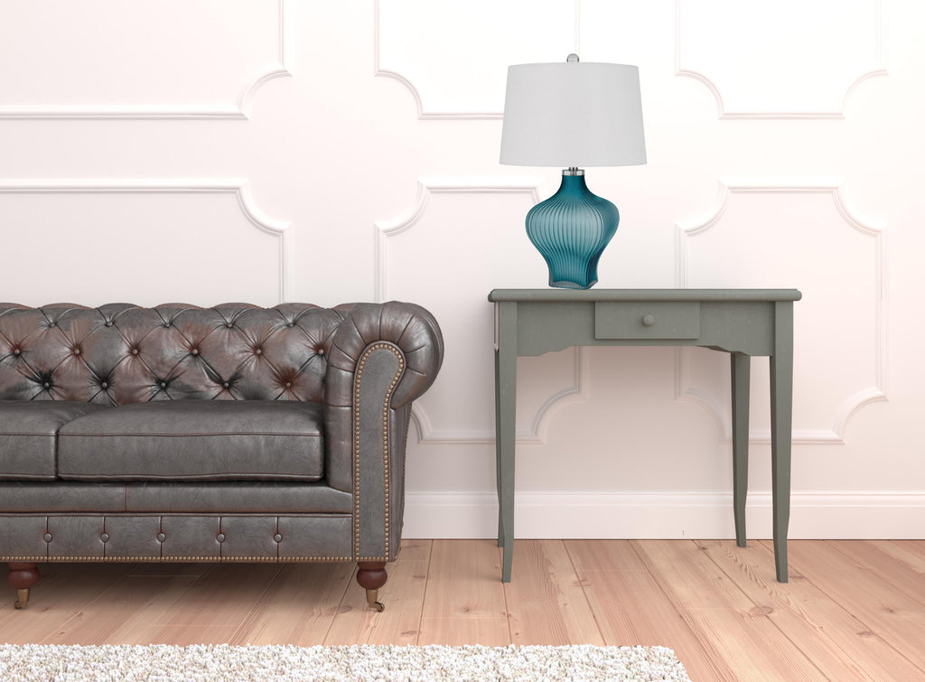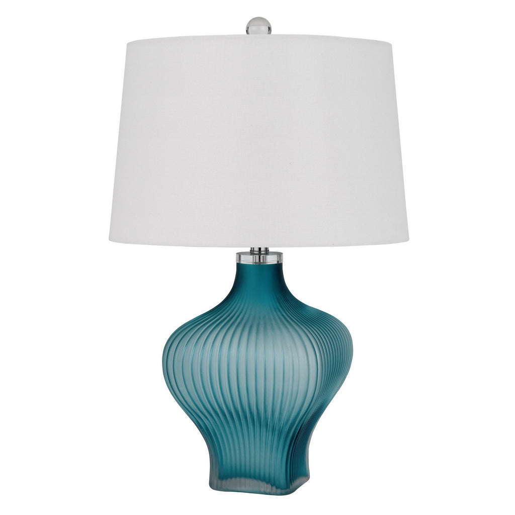 Embrace the good life with this hard working and stylish 26" aqua glass table lamp with white empire shade. The base of this lamp is made of glass finished in a dusty matte aqua tone. Includes a white fabric, empire shaped shade, making this a fashionable piece that will complement most any interior. This standard table lamp is designed to provide general lighting to the area. The light that this lamp throws is soft and warm to elevate the look of most any space in your home. Bring some lite and good vibes into your space with this updated and stylishly designed lamp. 26" H x 16" W x 16" D