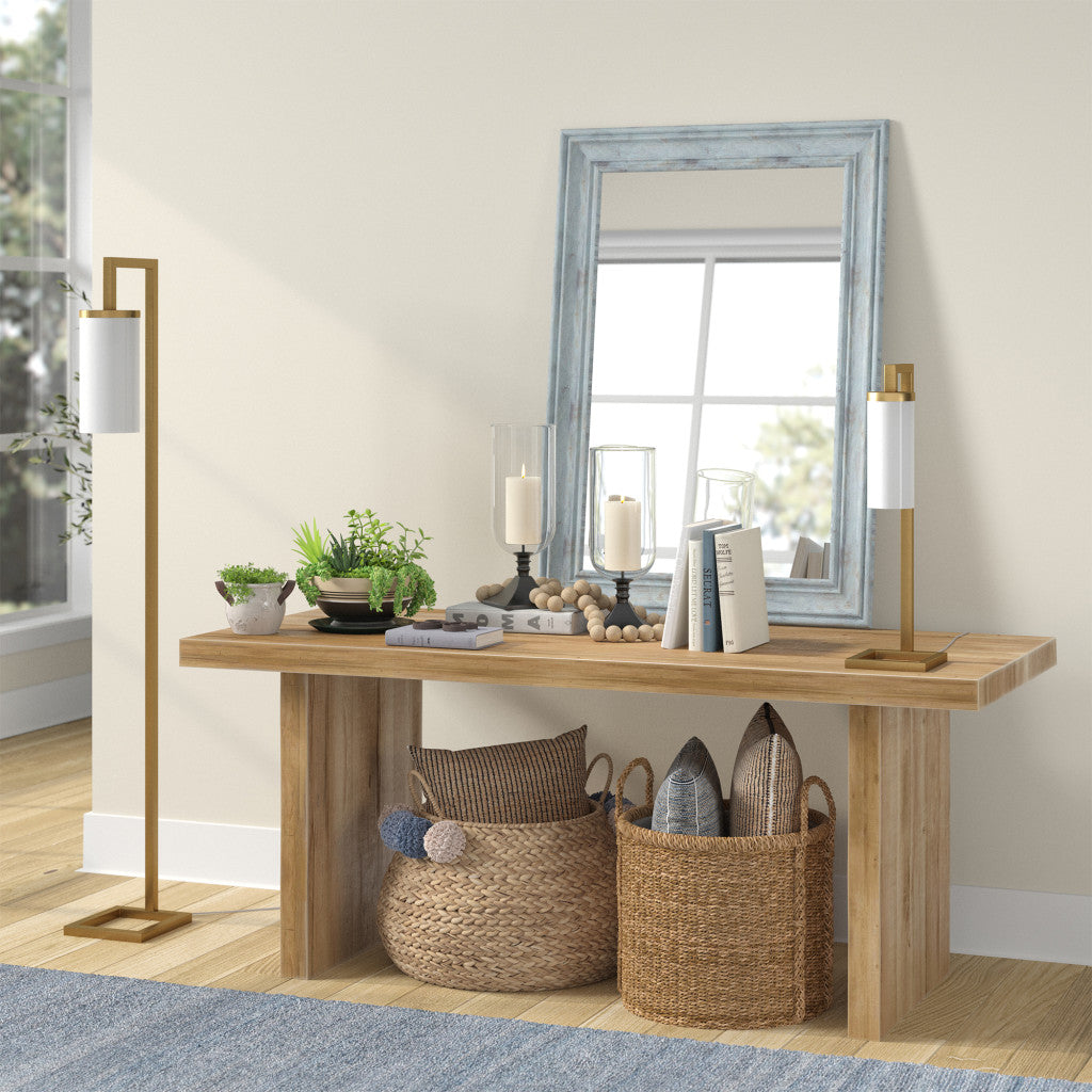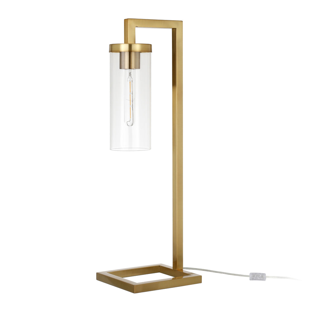 Embrace the good life with this hard working and stylish 26-inch brass metal arched table lamp with clear cylinder shade. A gorgeous brass metal base brings just the right amount of pizzazz to this fabulous lamp. Includes a clear glass, cylinder shaped shade, making this a fashionable piece that will complement most any interior. A sophisticated take on a classic, this arched table lamp is a great option for a unique look. The light that this lamp throws is soft and warm to elevate the look of most any space in your home. It is perfect for virtually any decor. 26-inch H x 8-inch W x 7-inch D