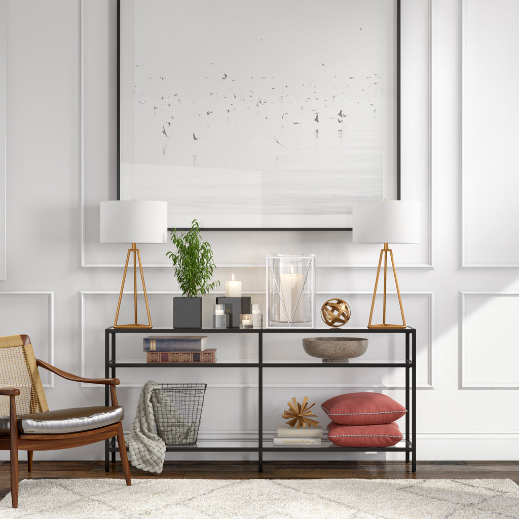This 26-inch gold metal table lamp with white drum shade is a great way to add some brightness to any corner of your home. The lamp is made of sturdy metal and features a gold color. The white drum fabric shade is a great compliment to this lamp. This standard table lamp is designed to provide general lighting to the area. High quality design makes this a great lamp for not only lighting, but accenting a room with style. Bring some lite and good vibes into your space with this updated and stylishly designed lamp. 26-inch H x 14-inch W x 14-inch D