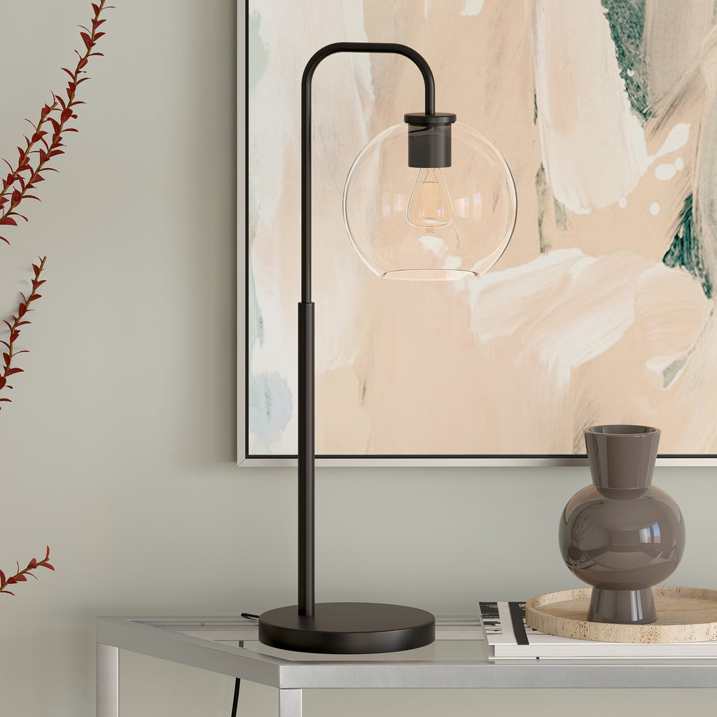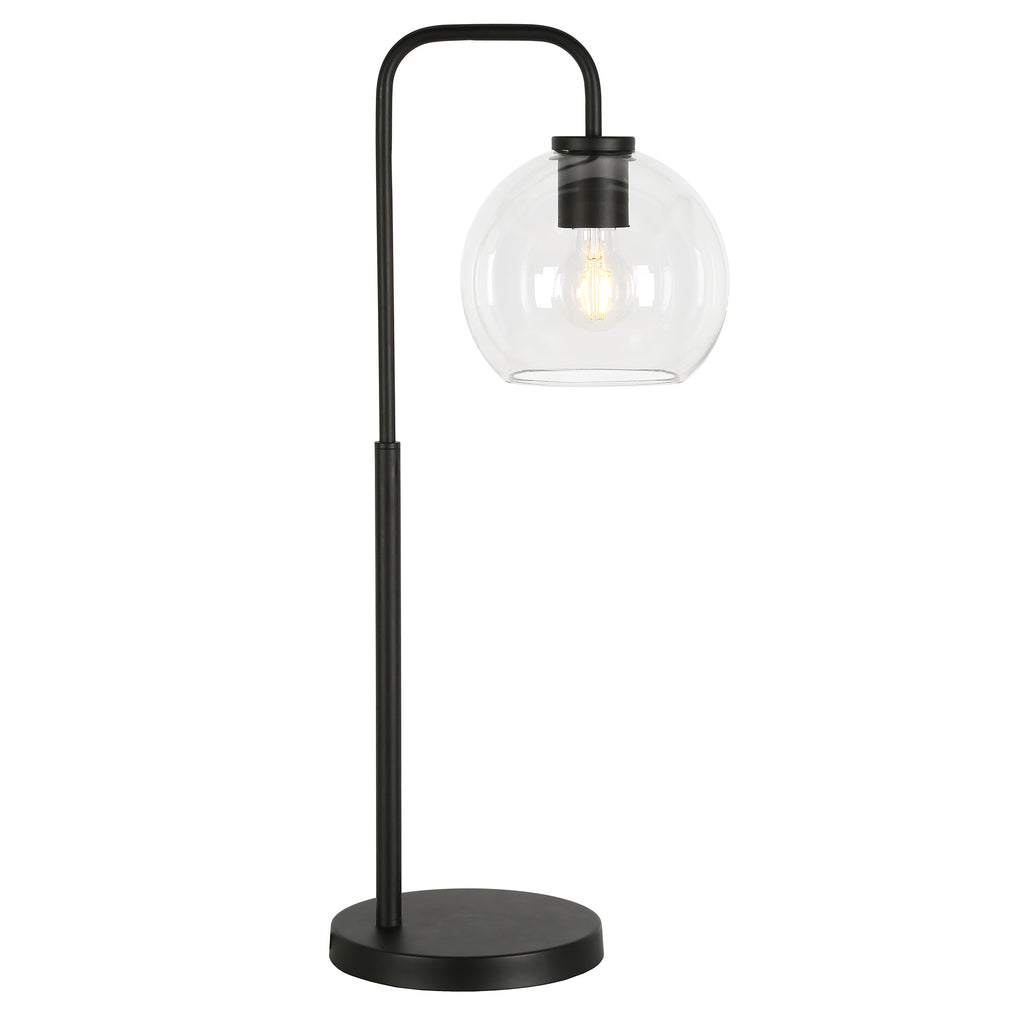 27" Black Metal Arched Table Lamp With Clear Globe Shade