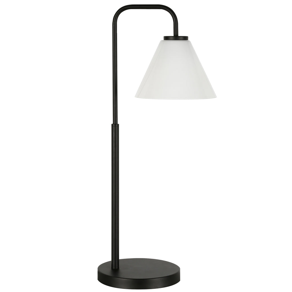 27" Black Metal Arched Table Lamp With White Cone Shade