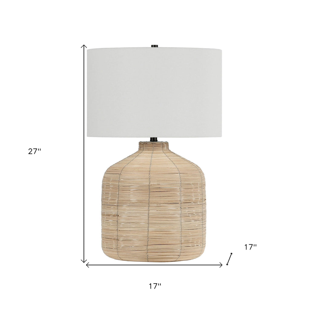 Add a bright anchor to your room with this 27-inch black rattan table lamp with white drum shade. A gorgeous black rattan base brings just the right amount of pizzazz to this fabulous lamp. The white drum fabric shade is finishes this piece off nicely and symmetrically this standard table lamp is designed to provide general lighting to the area. Use this lamp anywhere and elevate the look of the whole space. It is perfect for virtually any decor. 27-inch H x 17-inch W x 17-inch D
