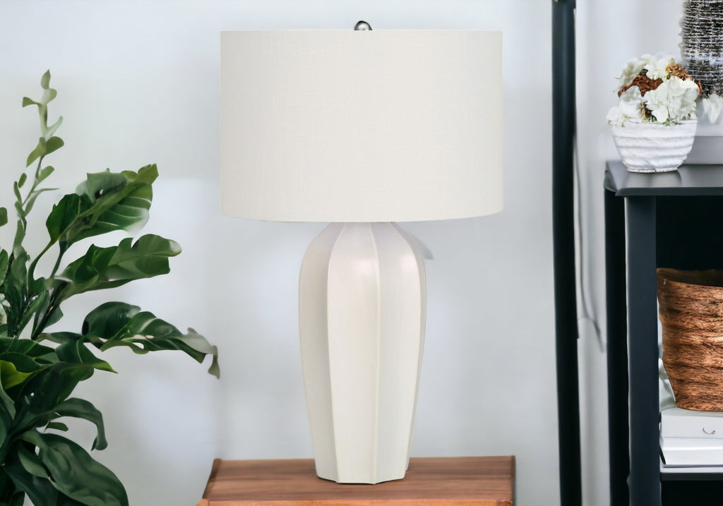 27" Cream Ceramic Geometric Table Lamp With Cream Drum Shade