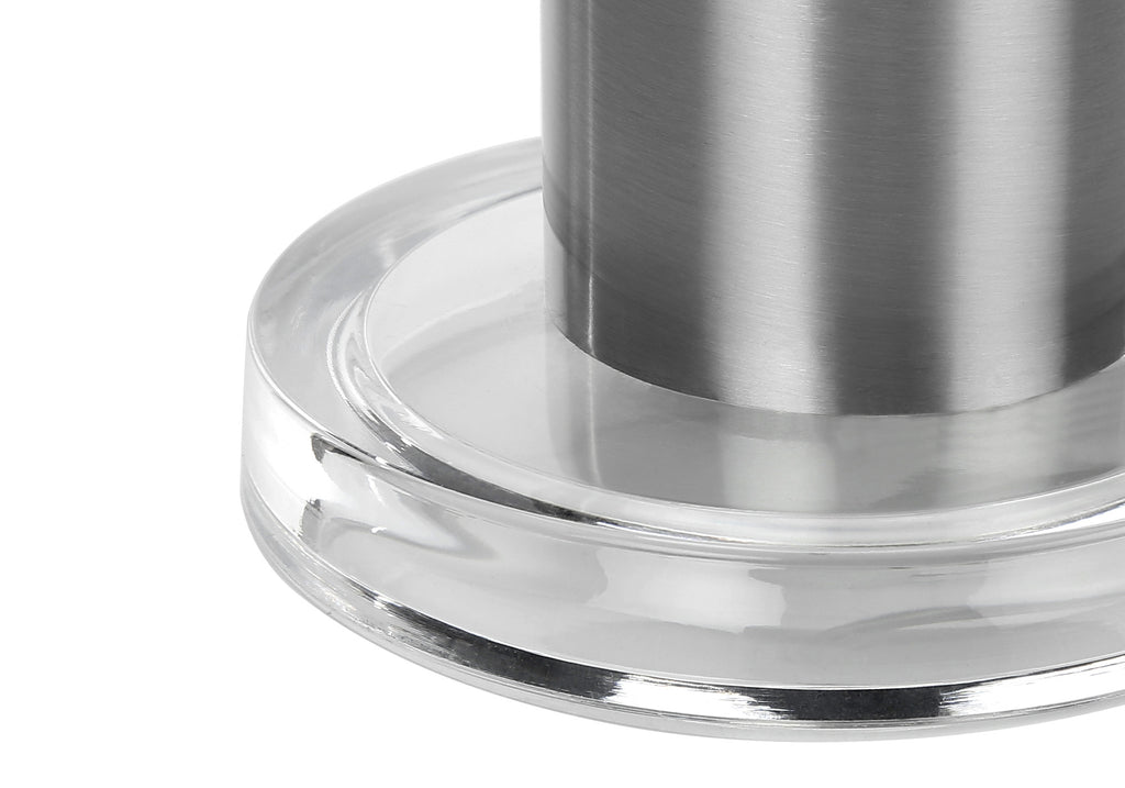 Bring of level of elegance and freshness to your space with this high quality 28-inch silver acrylic cylinder table lamp with ivory drum shade. The base of this lamp is made of acrylic finished in a silver tone. The ivory shade has a drum shape and is made from linen. This standard table lamp is designed to provide general lighting to the area. The light that this lamp throws is soft and warm to elevate the look of most any space in your home. It is perfect for virtually any decor. 27.5-inch H x 15-inch W x 15-inch D