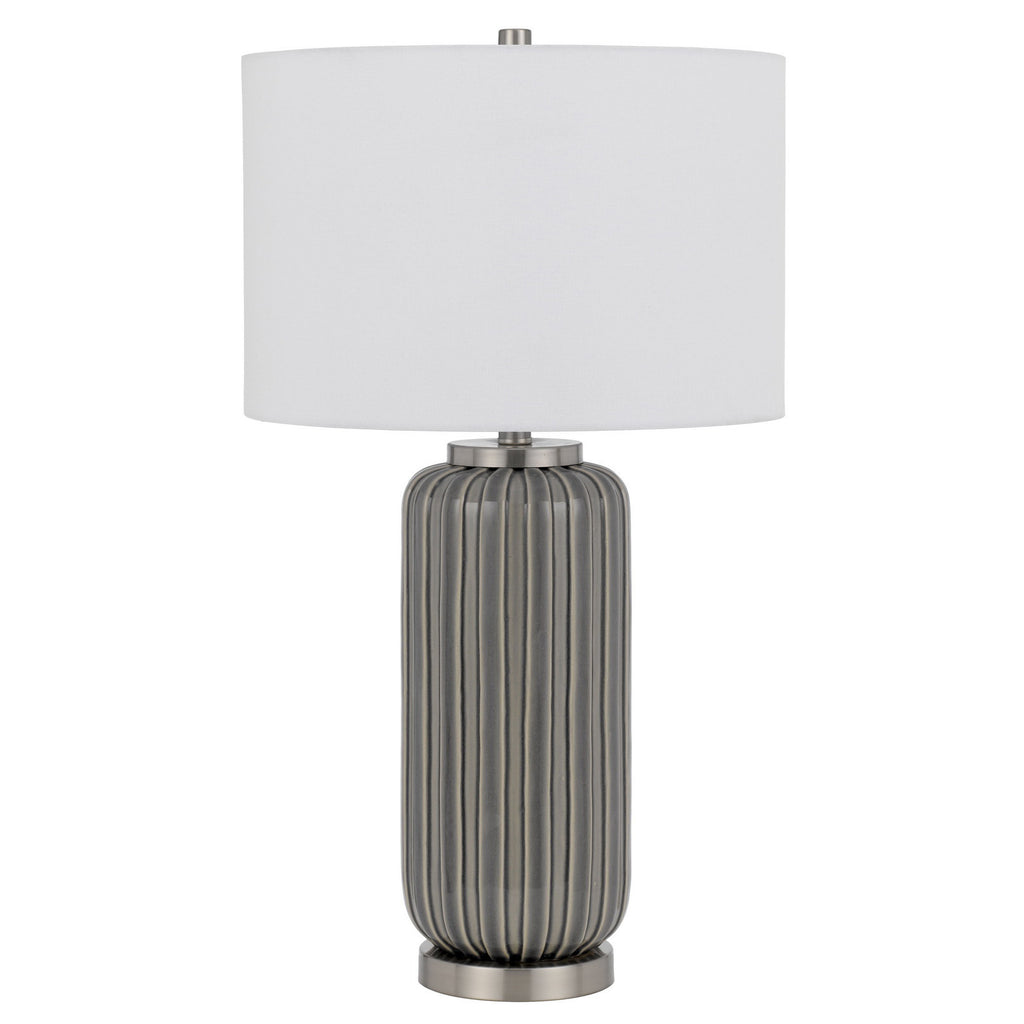 This 29" taupe metal table lamp with white drum shade is a great way to add some brightness to any corner of your home. A gorgeous taupe metalbase brings just the right amount of pizzazz to this fabulous lamp. The white shade has a drum shape and is made from fabric. This standard table lamp is designed to provide general lighting to the area. High quality design makes this a great lamp for not only lighting, but accenting a room with style. Bring some lite and good vibes into your space with this updated and stylishly designed lamp. 29" H x 16" W x 16" D