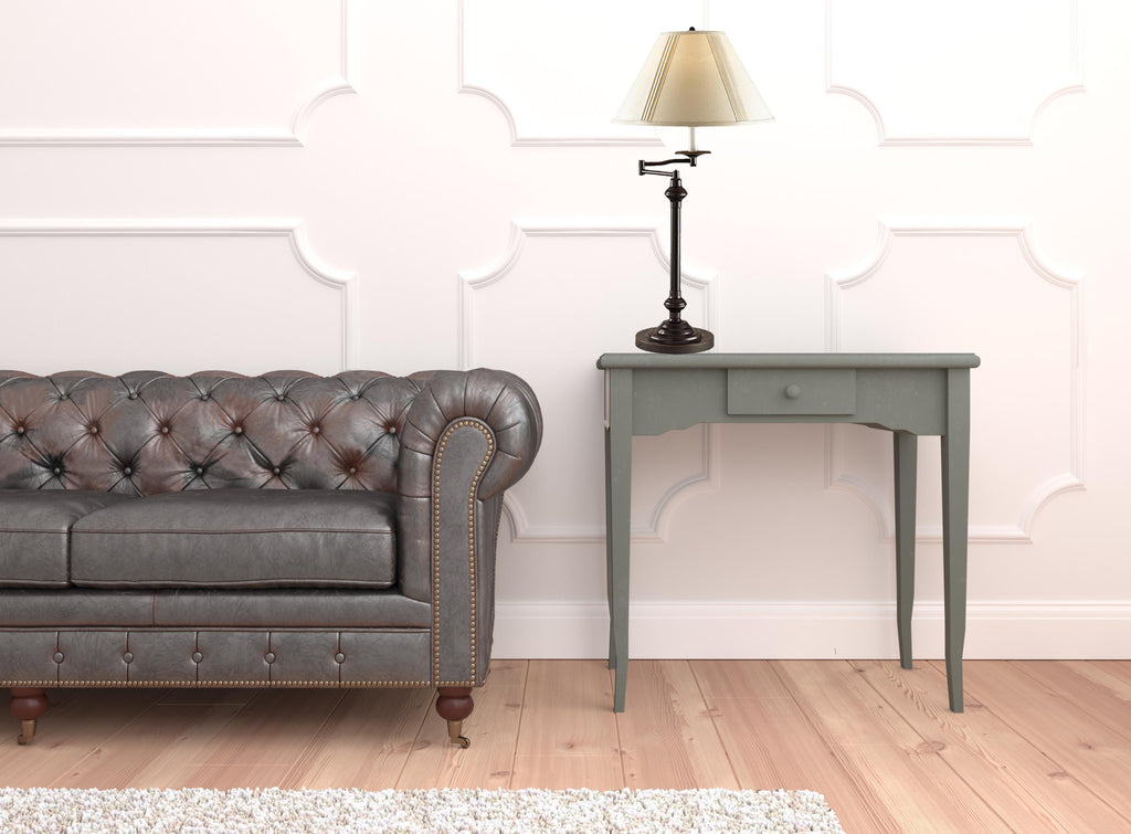 30" Bronze Metal Table Lamp With Off White Empire Shade