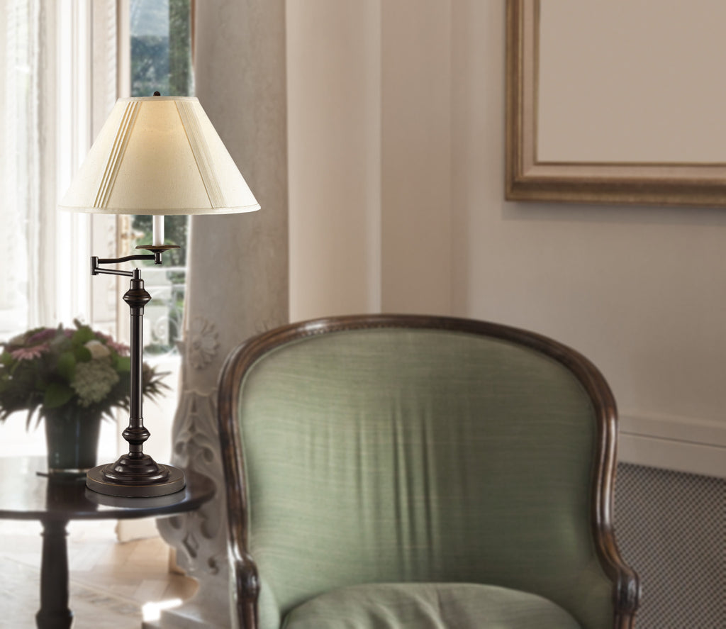 Bring of level of elegance and freshness to your space with this high quality 30" bronze metal table lamp with off white empire shade. The base of this lamp is made of metal finished in a bronze tone. Includes a off white fabric, empire shaped shade, making this a fashionable piece that will complement most any interior. This standard table lamp is designed to provide general lighting to the area. High quality design makes this a great lamp for not only lighting, but accenting a room with style. The perfect lamp to create just the right natural and soothing light in your space. 29.5" H x 22" W x 16" D