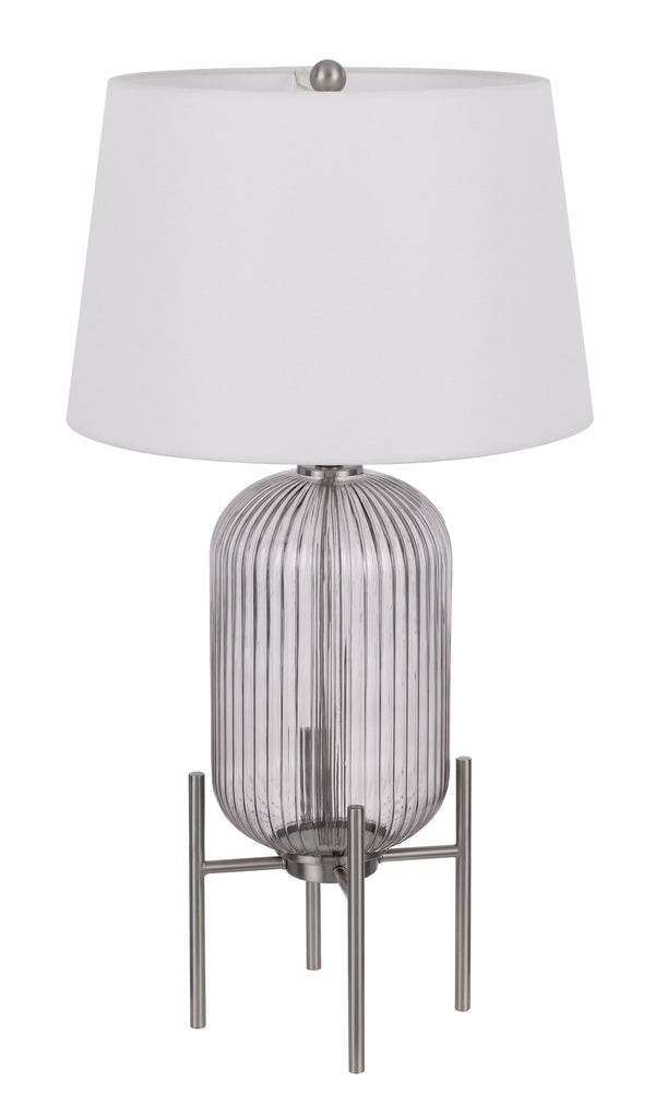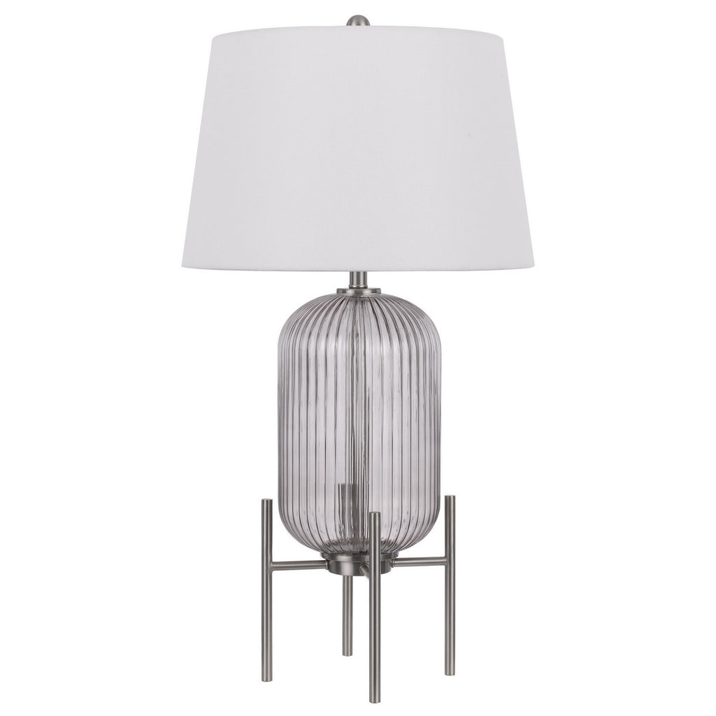 33" Nickel Glass Table Lamp With White Empire Shade