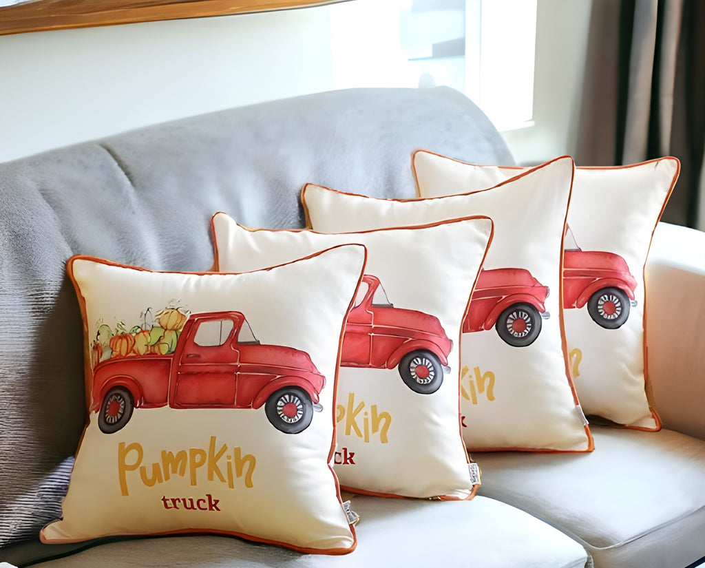 Set Of 4 18" Pumpkin Truck Throw Pillow Cover In Multicolor
