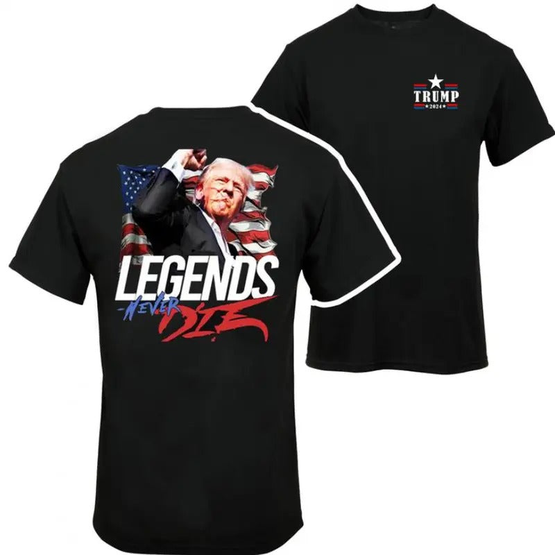 Trummp Legends Never Die 2024 Shirt - 2 Side - President Merch, trummp shirt, vance shirts, Unisex, Trending Tee Round Neck Casual