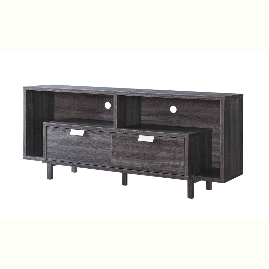 Make a true home theater of your room with this captivating 60" ash gray particle board and MDF cabinet enclosed storage tv stand. To add to the versatility, this piece features open non-concealed storage that can be used for not only storage but display as well. Ideal for tv placement and storage in your living room, bedroom or office. 25" H x 60" W x 15.5" D