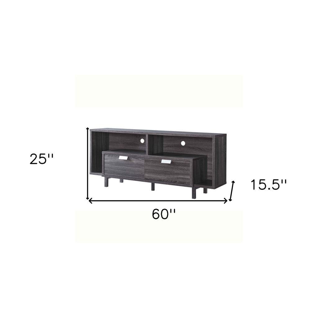60" Ash Gray Particle Board And Mdf Cabinet Enclosed Storage TV Stand