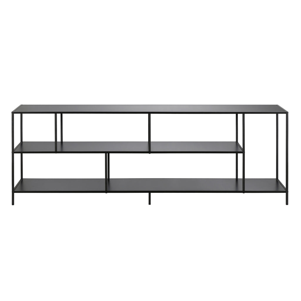 Ready to be enjoyed in your living room, family room, or recreation room, this 70" black metal open shelving TV stand is a practical and good looking piece...