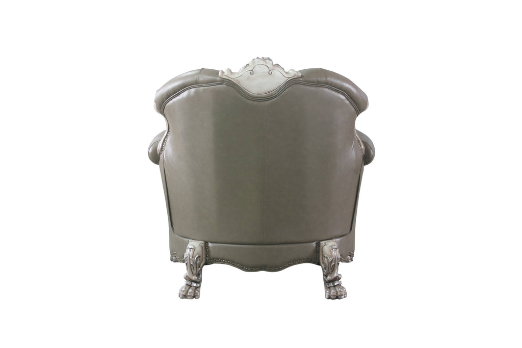 45" Bone White Faux Leather And Vintage Bone White Arm Chair