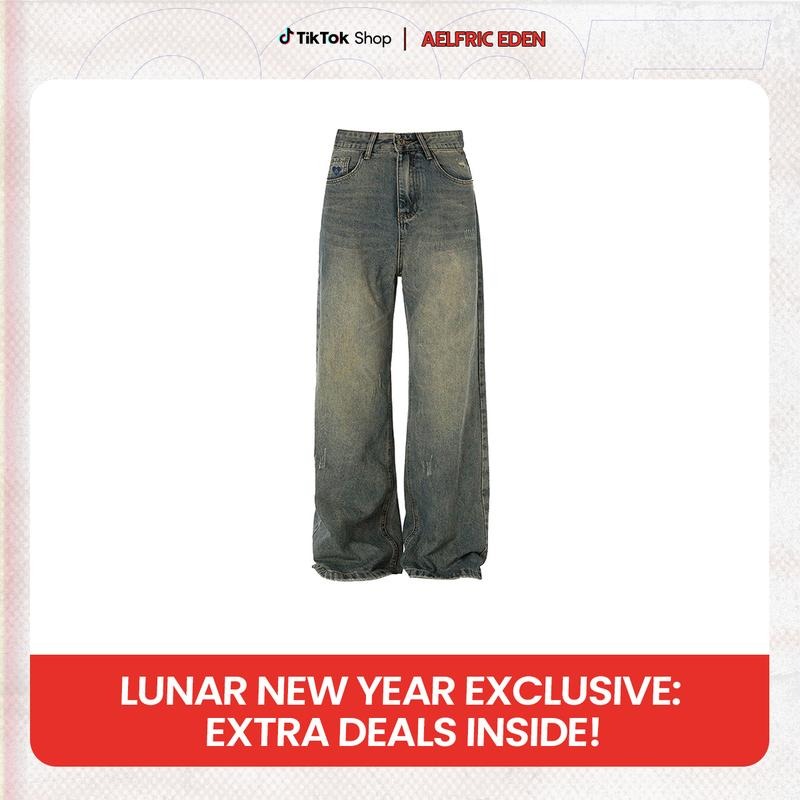 Aelfric Eden Solid Vintage Loose Jeans Pants Casual Streetwear Denim Bottom Baggy Jeans