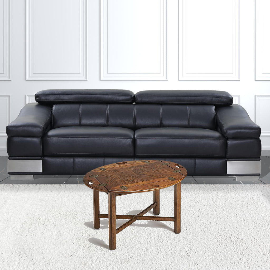 Crafted to perfection from rubber wood solids the Vintage Oak Table is rustic and versatile in design. You can either fold it up on four sides to form a tray with the brass finished hinges or keep it open to serve as a table. It can also be doubled up as a side table. The gleaming cherry veneer finish adds a beautiful touch to the table making it compatible in any room. Owing to it's stability and sturdiness are the four strong substantial wooden polished legs that complete this vision. 18.5" x 30" x 22.5"